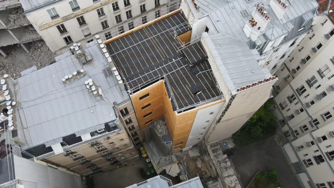 Construction en tous corps d'état de 11 logements et d'un local commercial. Site occupé par une association avec diverses structures en bois (blancs, table, éolienne et stockage) sans aucune culture dans le sol