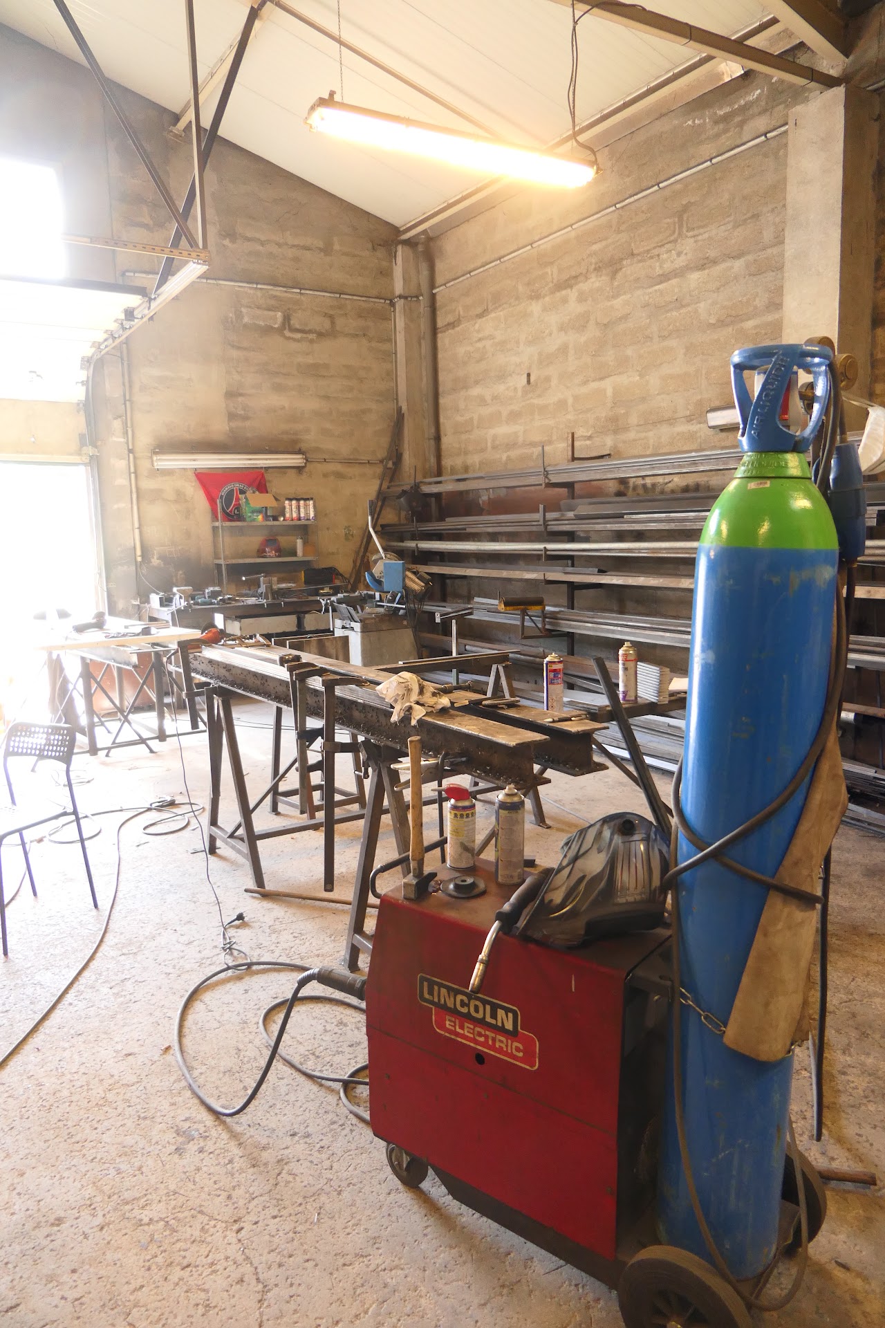 - Tour, Scies, perceuses à colonne, 2 postes à souder MIG