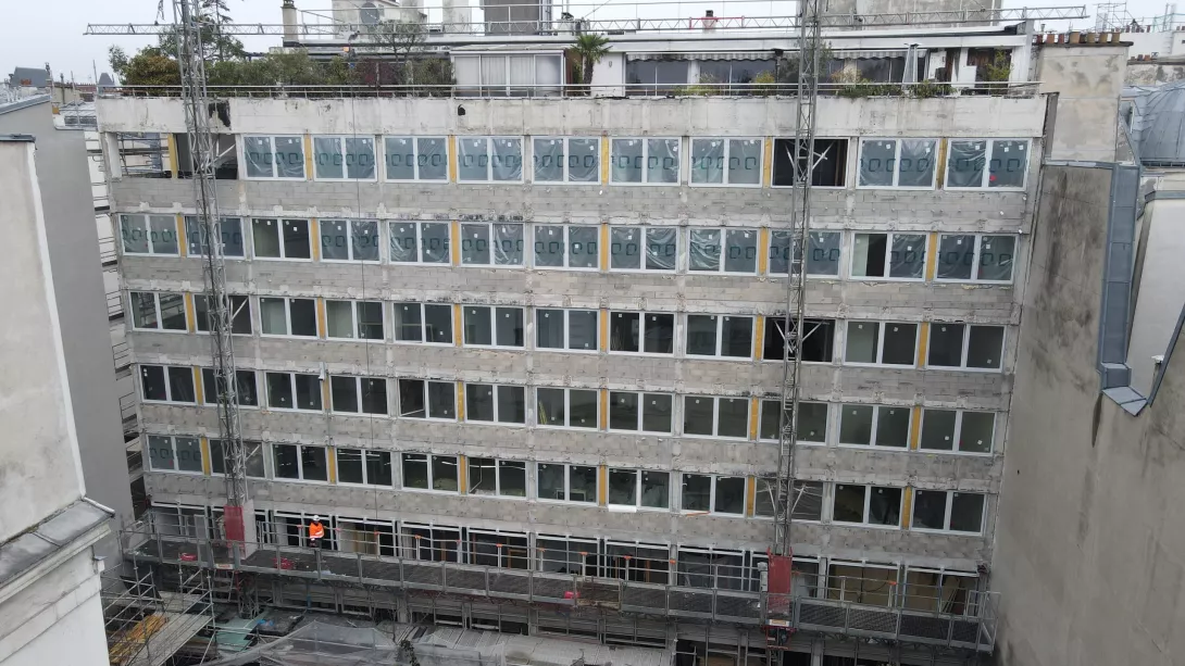 Réhabilitation thermique du siège de la SNHF (Société Nationale d’Horticulture de France), en site occupé, sans interruption du fonctionnement de l’établissement. Le bâtiment se développe sur 7 étages, un RDC et 3 niveaux de sous-sol dédiés au parking et locaux techniques.