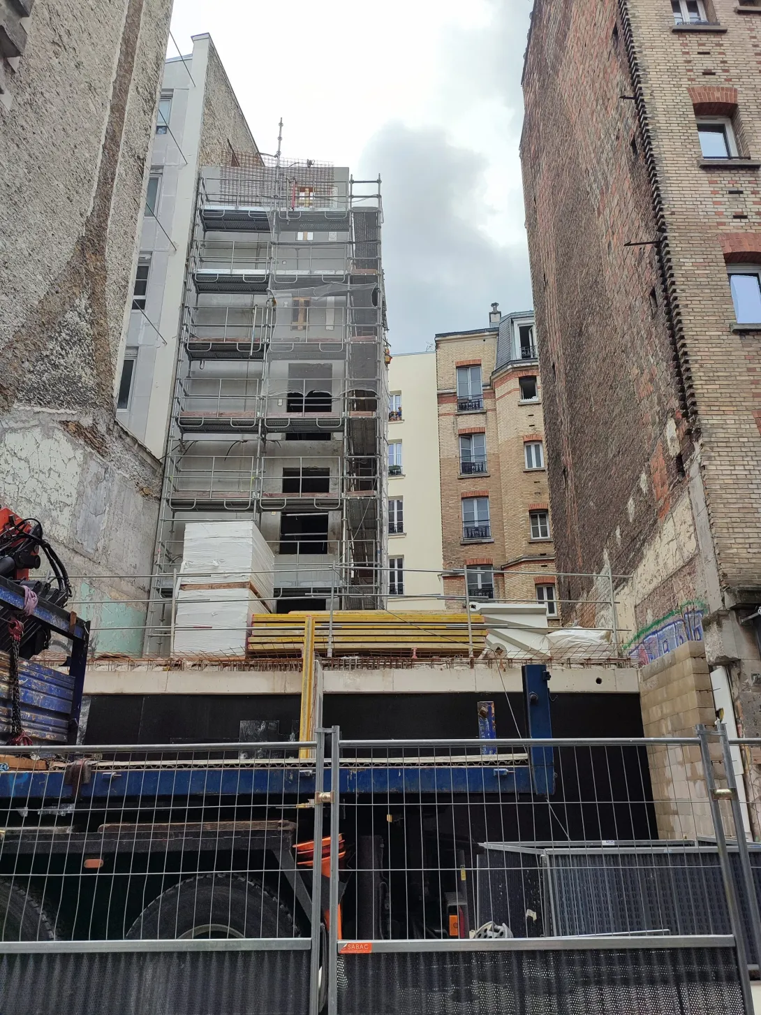 Construction en tous corps d'état de 11 logements et d'un local commercial. Site occupé par une association avec diverses structures en bois (blancs, table, éolienne et stockage) sans aucune culture dans le sol
